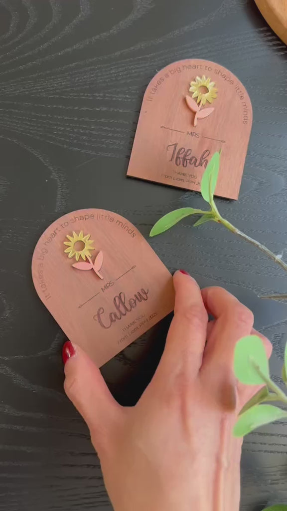 Personalised 3D Acrylic Flower Wooden Magnet, Custom Engraved Thank You, Appreciation Teacher Gift, End of Year/ Grad Coach Mentor Keepsake